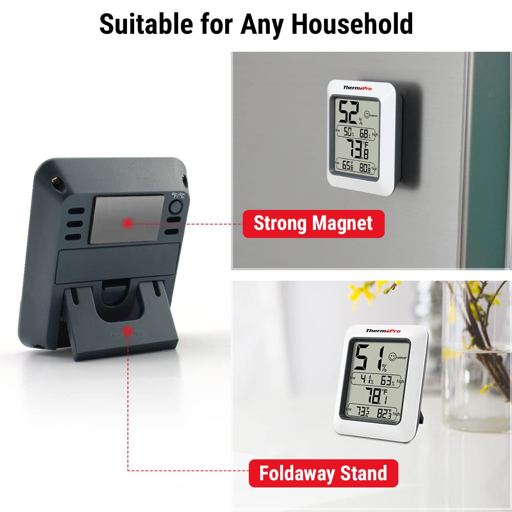 - Healthier Home & Environment: Thermometer hygrometer with temperature and humidity monitor ensures proper indoor humidity control has important skin, allergen and other health benefits; Can also be as refrigerator thermometer, freezer thermometer, reptile thermometer, soil thermometer, humidor hygrometer, cigar hygrometer and more